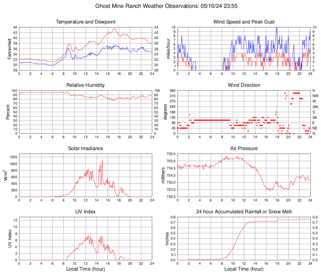 Temperature (F) 37.9 31.2 @ 05:25 43.6 @ 17:10 36.6