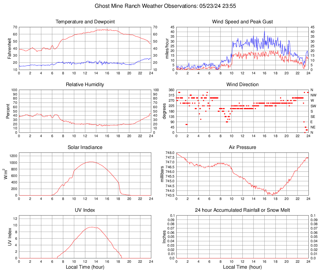 Temperature (F) 46.4 35.5 @ 03:15 66.6 @ 15:10 53.3