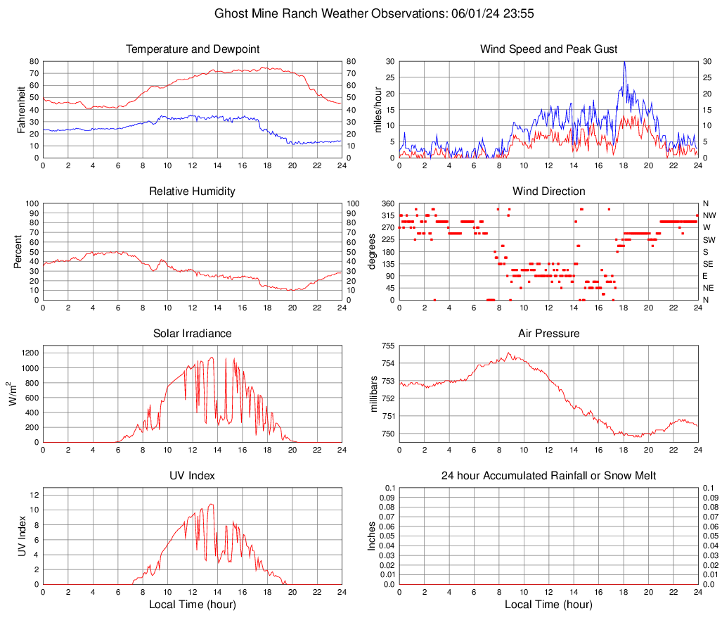 Temperature (F) 45.4 40.6 @ 03:50 75.1 @ 17:35 58.3