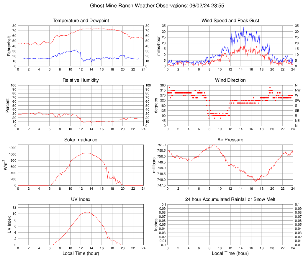 Temperature (F) 54.2 41.5 @ 03:50 74.5 @ 16:25 60.5