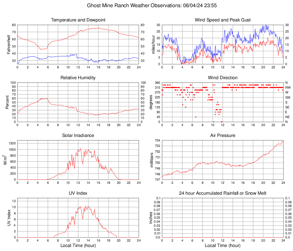 Temperature (F) 61.6 45.7 @ 04:35 75.5 @ 15:15 64.0