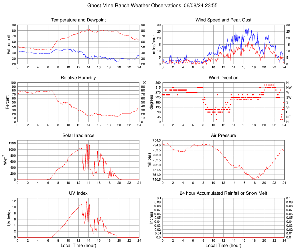 Temperature (F) 62.3 44.9 @ 04:40 81.6 @ 14:10 65.5