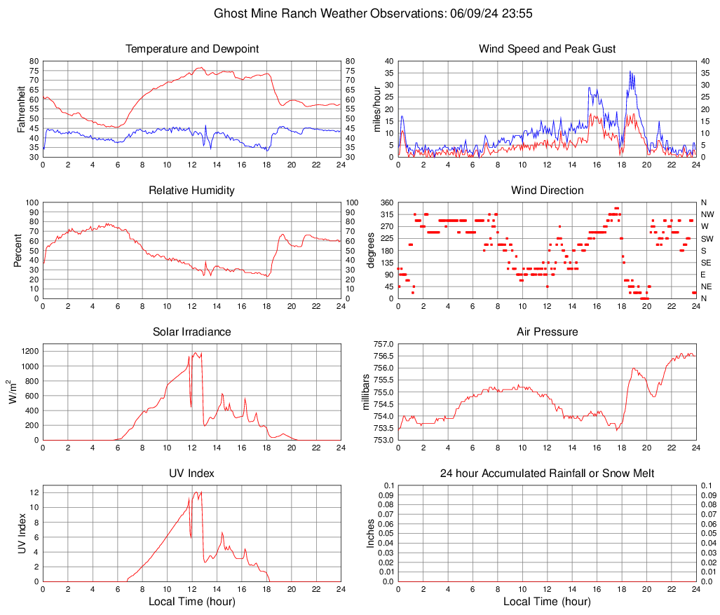 Temperature (F) 57.5 45.5 @ 05:50 76.7 @ 12:45 61.8