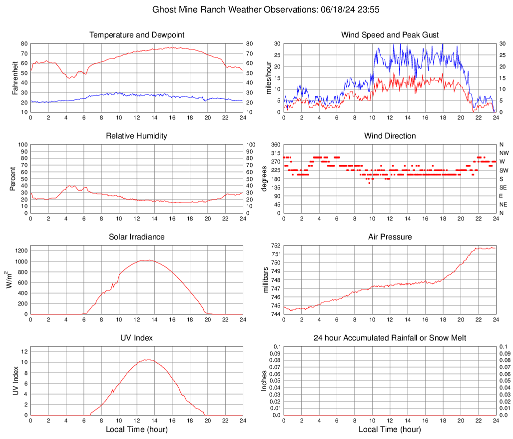 Temperature (F) 52.6 44.6 @ 04:20 76.0 @ 15:35 64.2