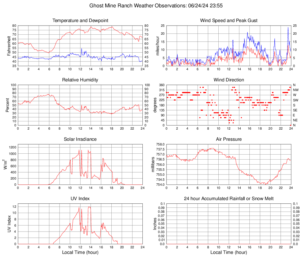 Temperature (F) 66.6 49.5 @ 05:50 78.7 @ 14:05 67.1