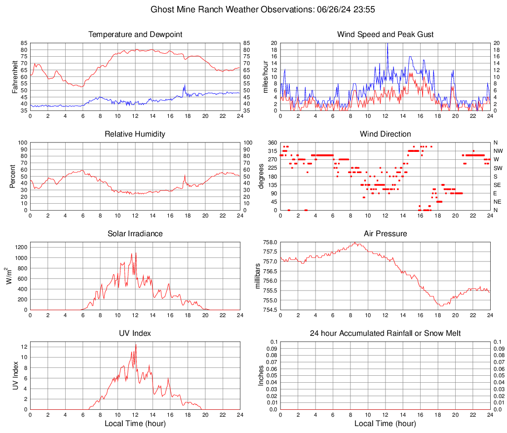 Temperature (F) 66.6 52.6 @ 05:45 80.3 @ 12:05 69.3