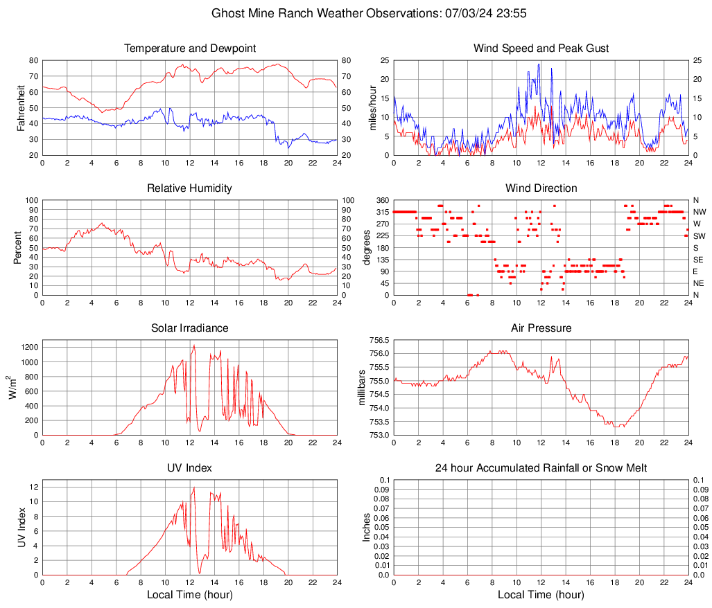 Dewpoint (F) 29.3 24.5 @ 20:00 49.7 @ 10:20 39.7