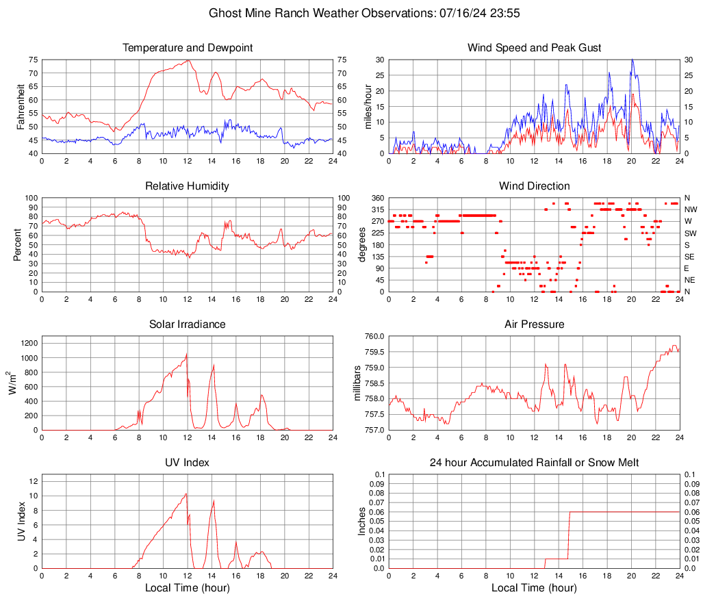 Temperature (F) 58.5 48.1 @ 05:55 74.6 @ 11:55 60.7