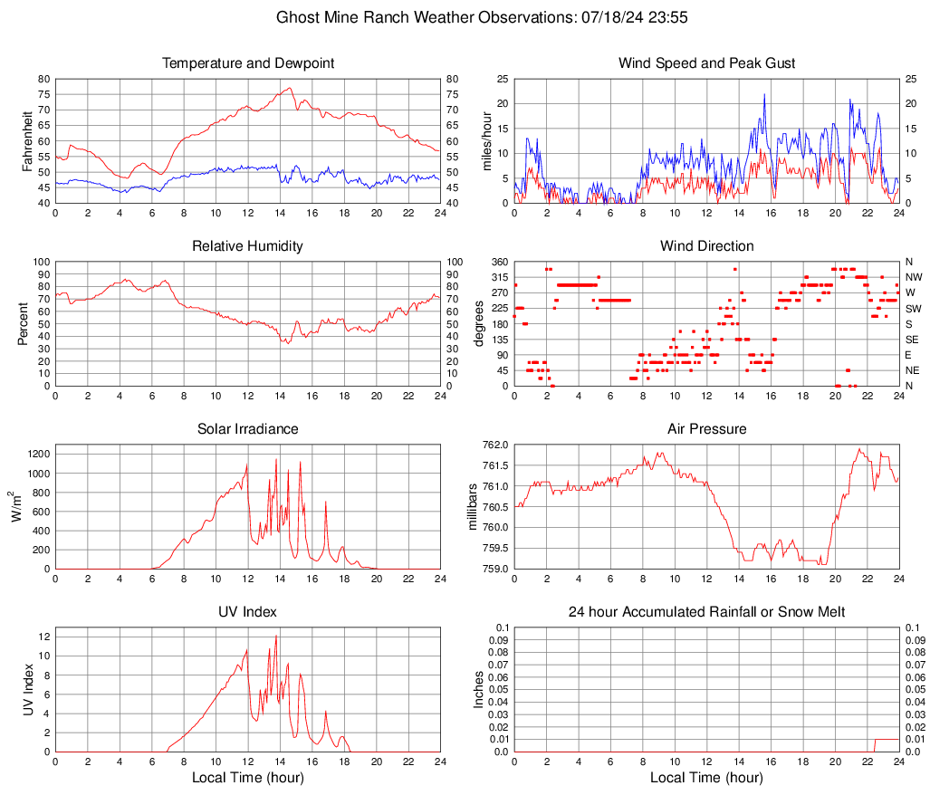 Temperature (F) 56.8 48.0 @ 04:25 77.1 @ 14:35 62.4