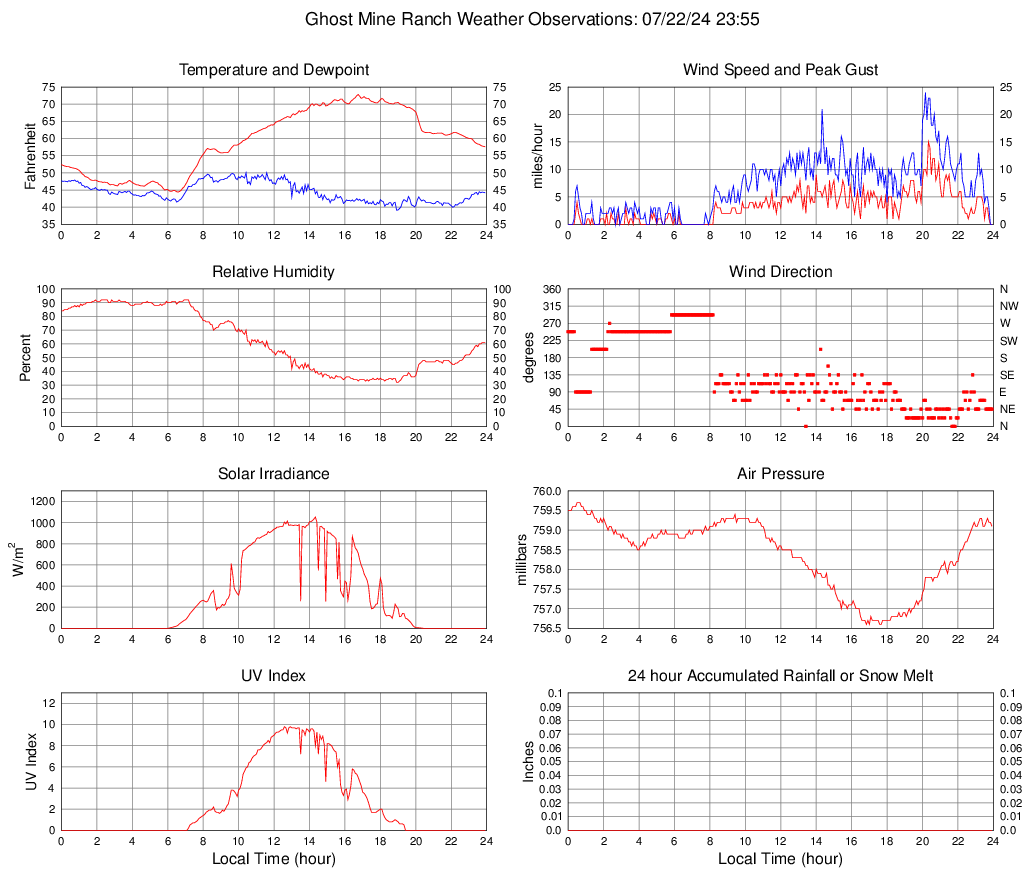 Temperature (F) 57.6 44.4 @ 06:35 72.8 @ 16:45 59.2