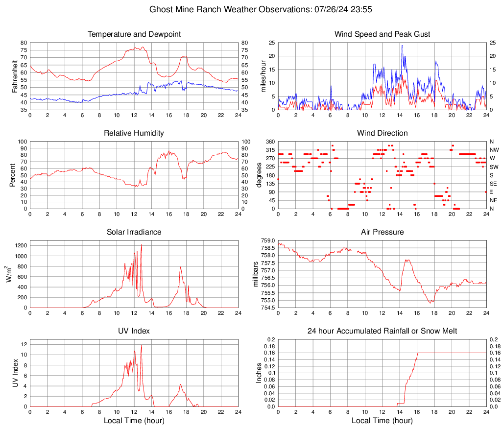 Temperature (F) 55.5 53.4 @ 22:35 77.1 @ 13:00 61.9