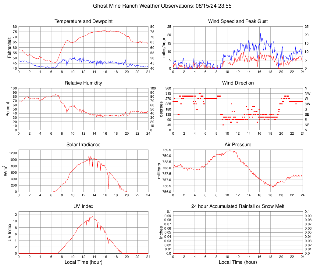 Temperature (F) 63.8 45.4 @ 06:45 76.6 @ 15:40 63.8