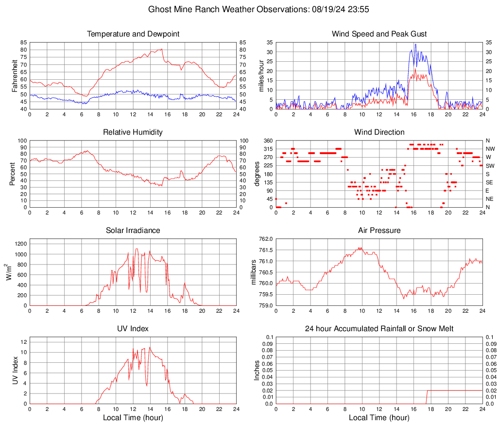Temperature (F) 62.8 48.6 @ 06:35 80.6 @ 15:20 64.0
