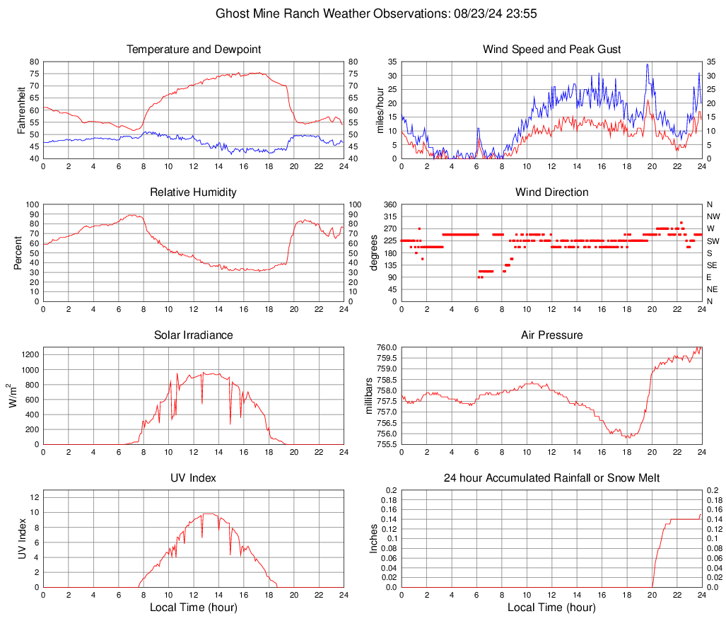 Dewpoint (F) 46.7 41.8 @ 15:00 51.1 @ 08:10 47.1
