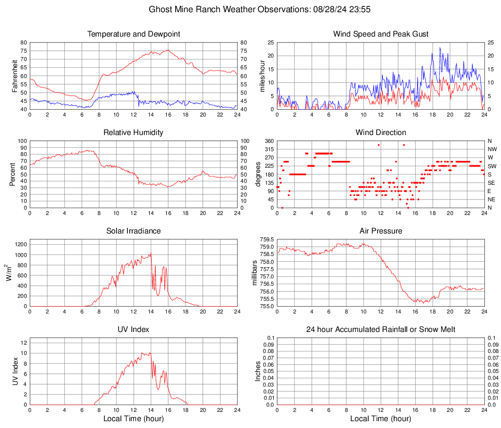 Temperature (F) 60.9 45.3 @ 06:35 75.5 @ 16:00 61.2