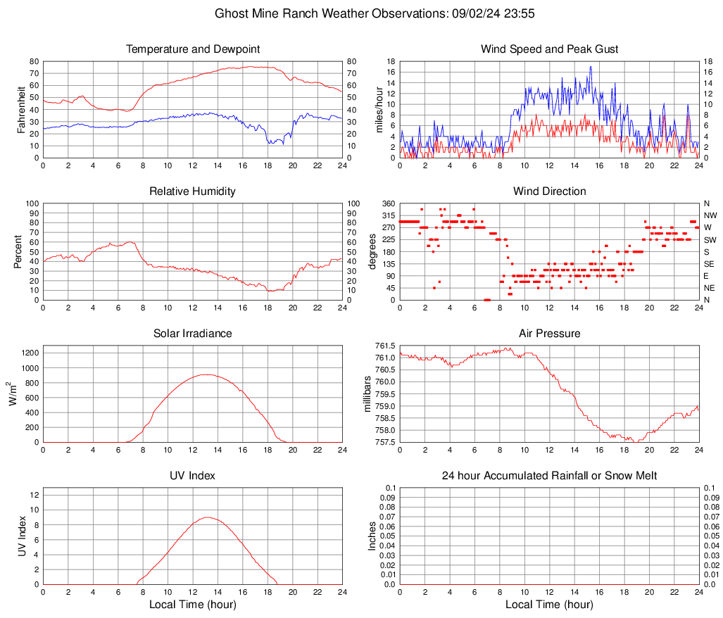 Temperature (F) 54.7 38.6 @ 06:40 75.6 @ 16:30 59.3