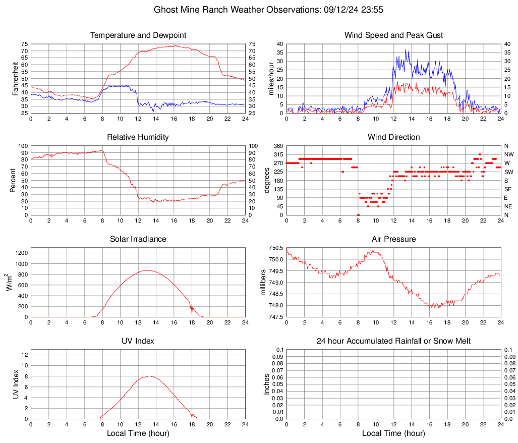 Temperature (F) 48.6 35.5 @ 06:45 73.9 @ 16:15 55.2