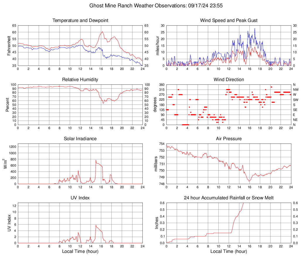Dewpoint (F) 35.0 35.0 @ 23:55 50.3 @ 11:45 45.4