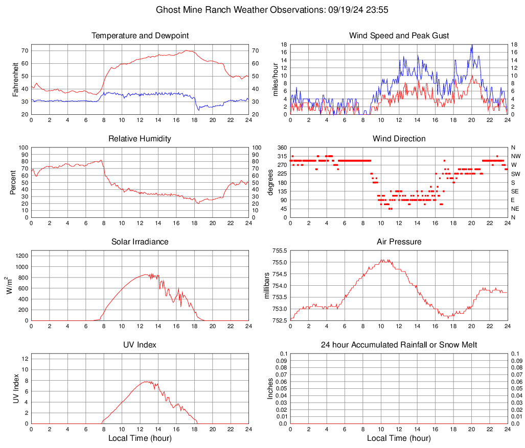Temperature (F) 49.7 35.5 @ 07:10 70.3 @ 17:05 53.6