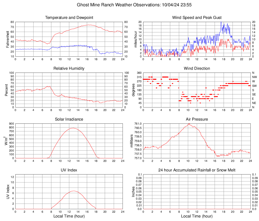 Temperature (F) 58.9 35.3 @ 07:10 74.0 @ 16:15 56.5