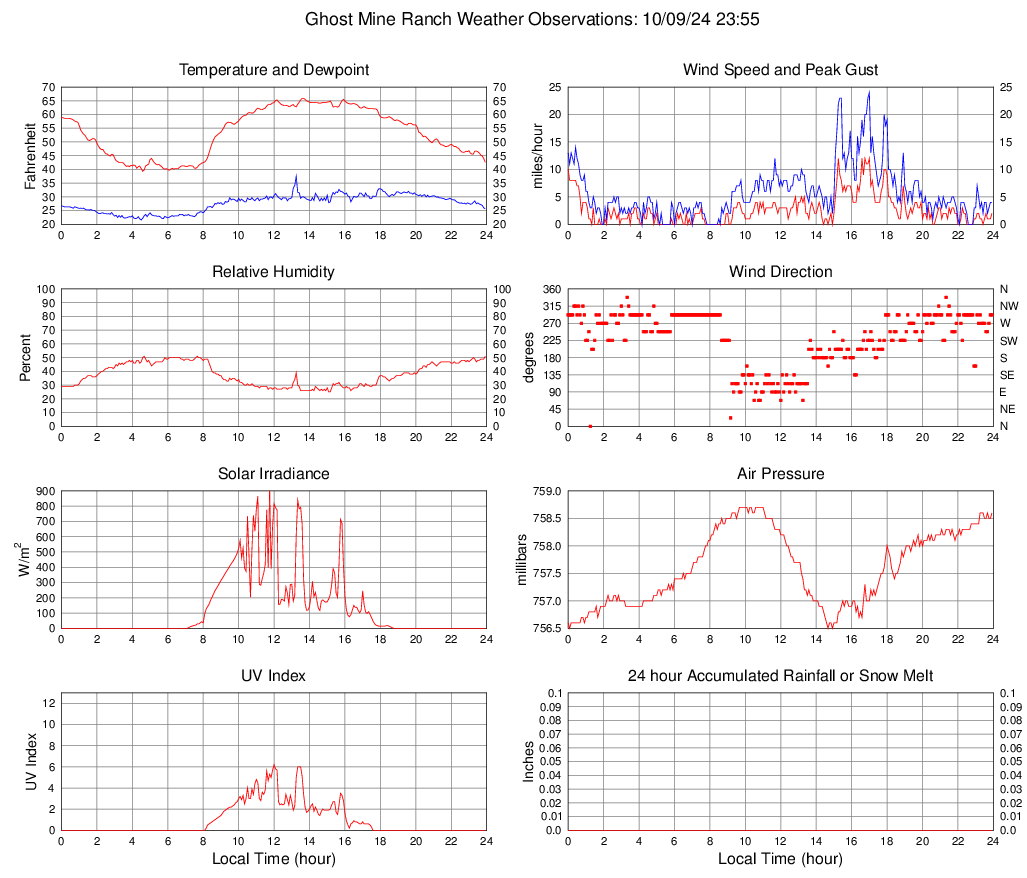 Temperature (F) 42.6 39.3 @ 04:35 65.9 @ 13:35 53.5