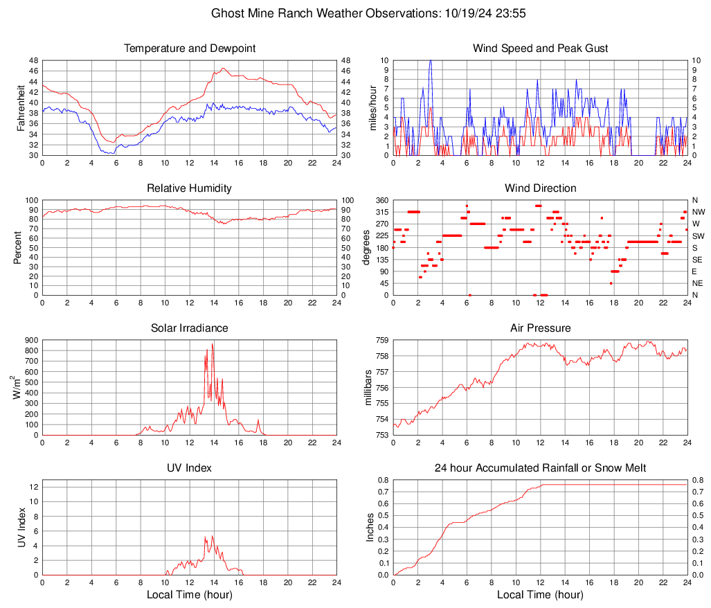 Temperature (F) 37.7 32.5 @ 05:40 46.5 @ 14:40 40.1