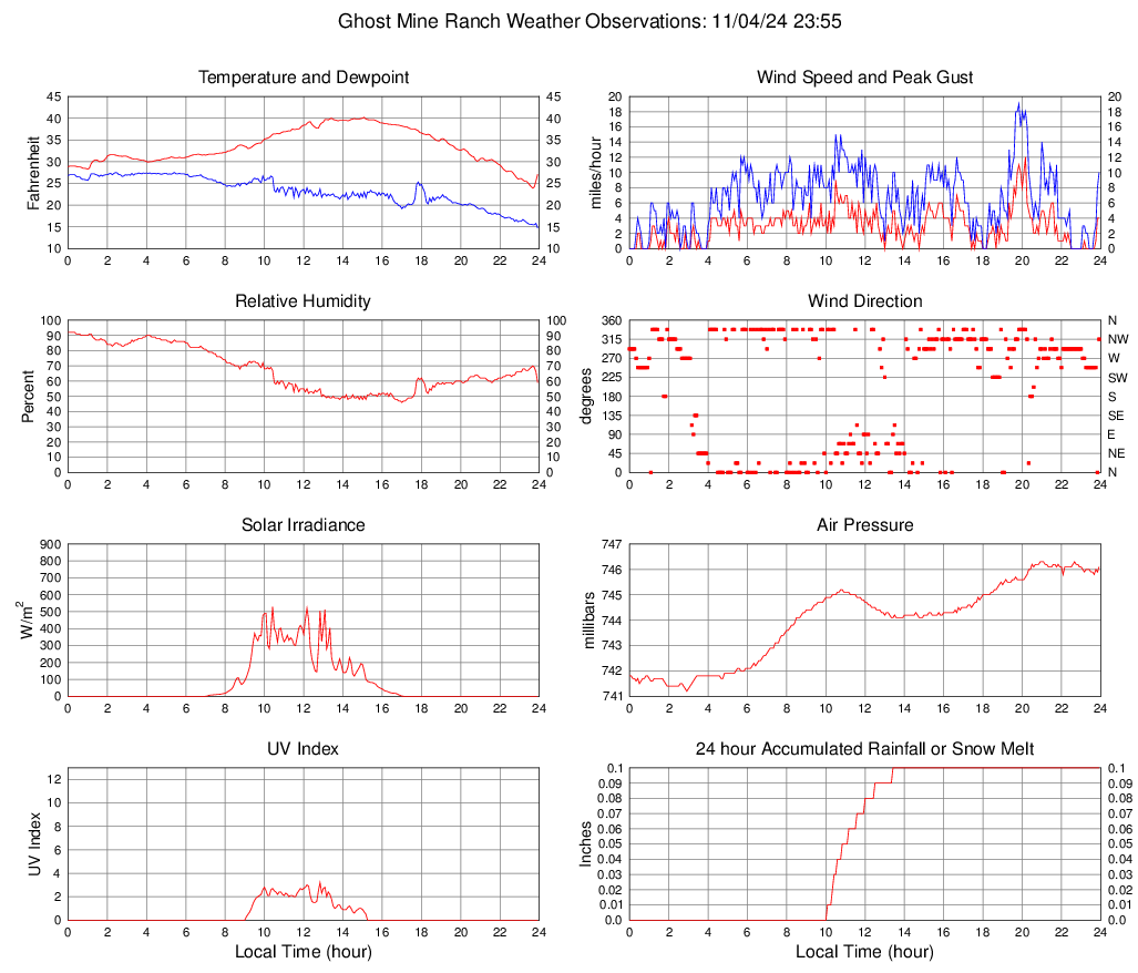 Temperature (F) 27.1 23.9 @ 23:40 40.2 @ 15:05 33.5