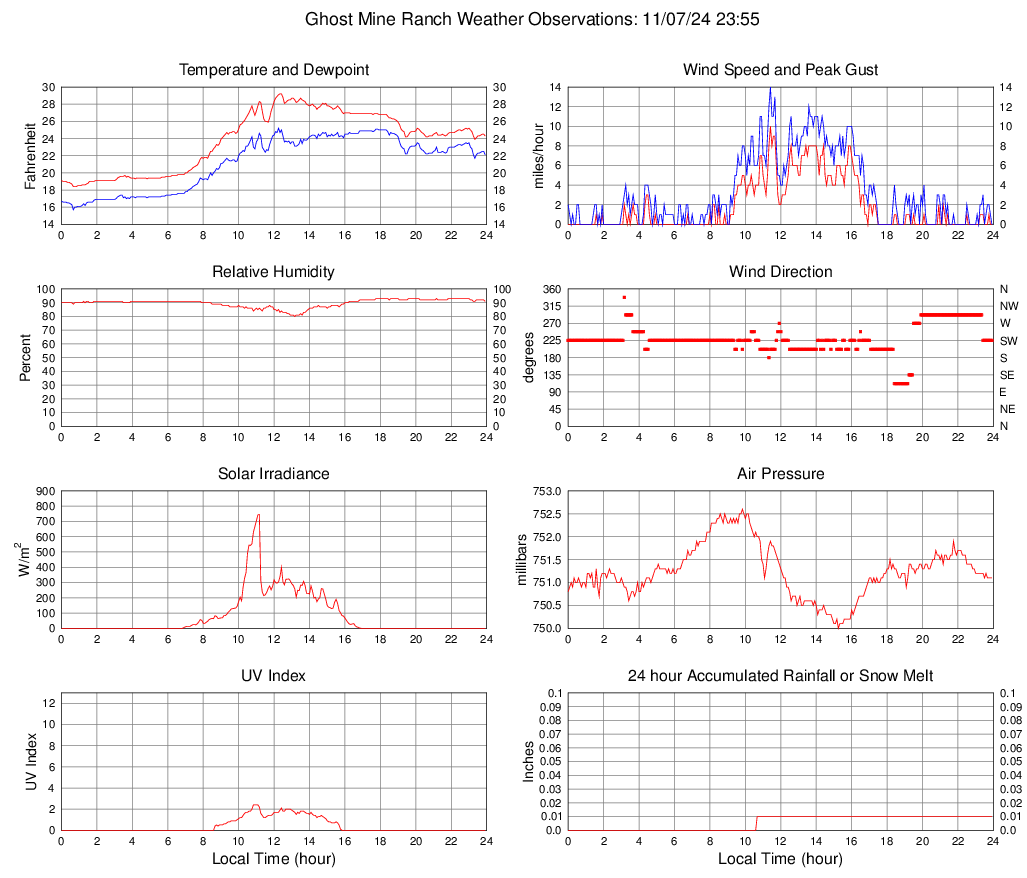 Temperature (F) 24.3 18.4 @ 00:40 29.2 @ 12:20 23.8