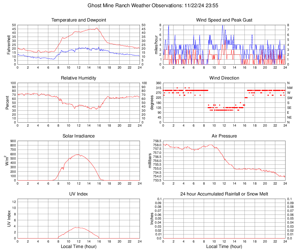 Temperature (F) 20.6 15.0 @ 04:35 46.3 @ 15:35 27.6