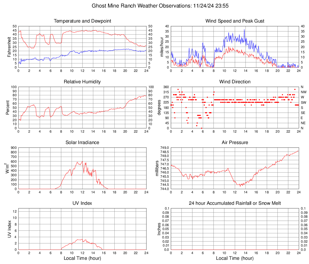 Temperature (F) 26.7 23.2 @ 02:30 45.2 @ 12:40 36.8