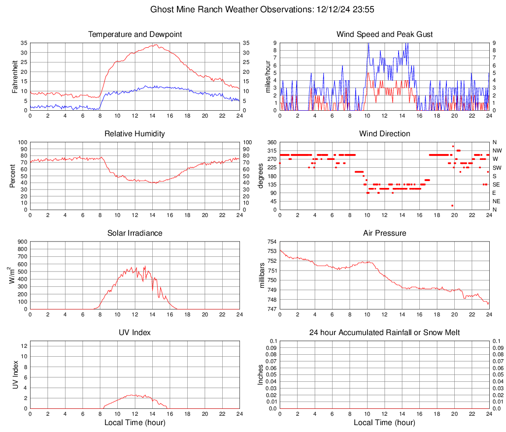 Temperature (F) 11.1 6.5 @ 04:55 34.1 @ 14:25 18.2