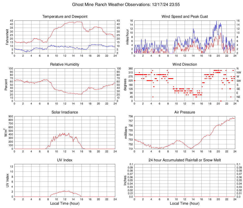 Temperature (F) 22.5 13.5 @ 02:50 43.4 @ 14:55 28.4