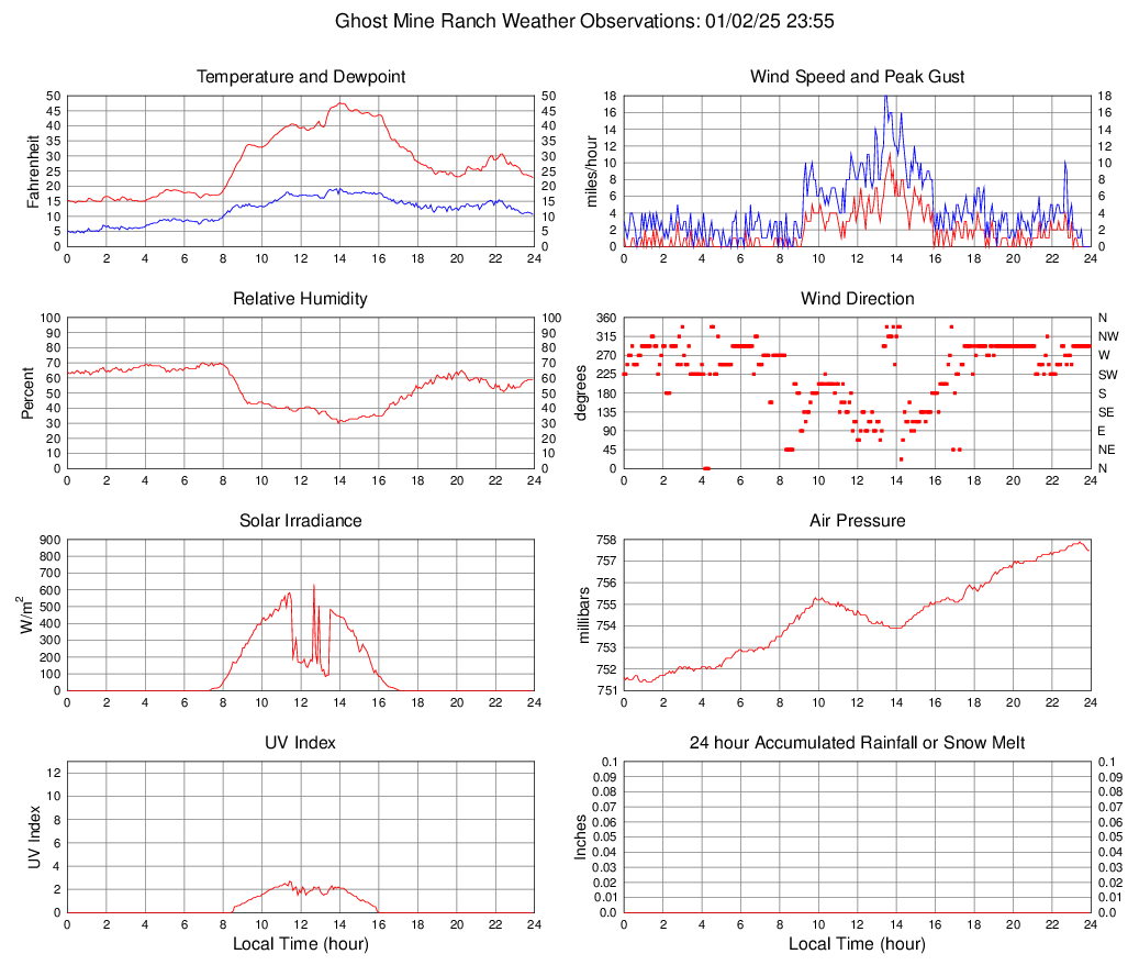 Temperature (F) 22.8 14.5 @ 00:25 47.6 @ 14:00 27.6