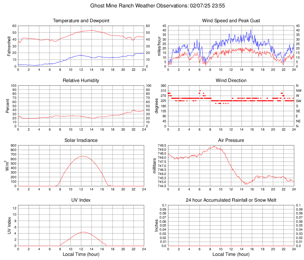 Temperature (F) 43.6 34.8 @ 00:20 53.4 @ 14:05 44.4