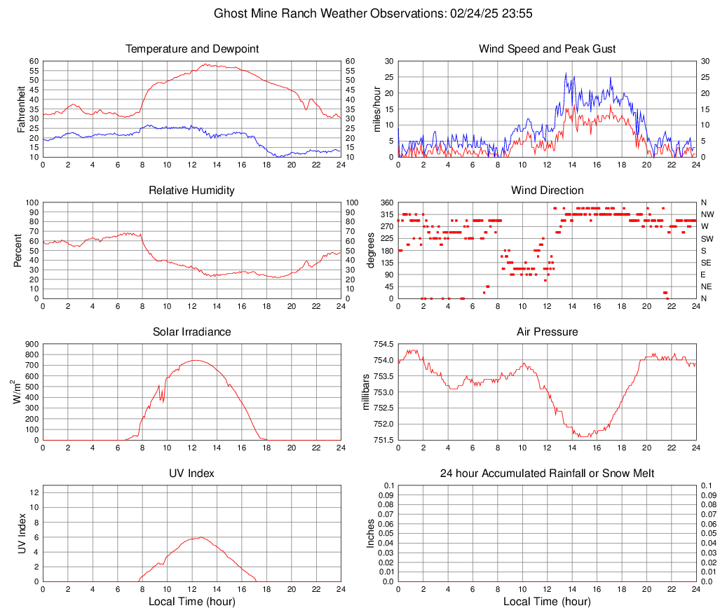 Temperature (F) 30.5 30.5 @ 23:55 58.5 @ 13:05 43.1