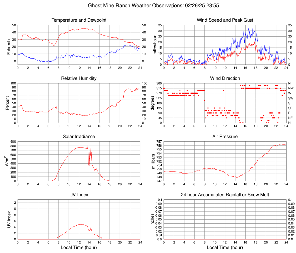 Temperature (F) 21.0 18.8 @ 23:30 45.9 @ 12:55 34.0