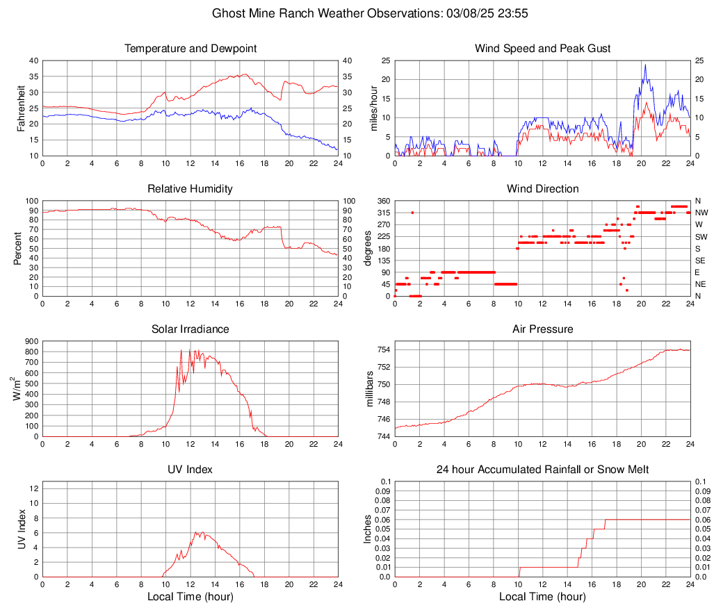 Temperature (F) 31.7 23.0 @ 06:35 35.7 @ 16:30 28.7