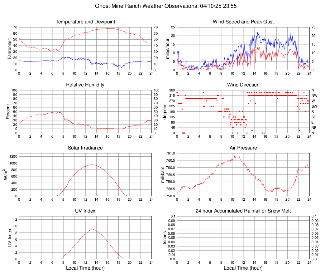 Temperature (F) 44.4 31.4 @ 05:40 68.5 @ 15:50 51.9