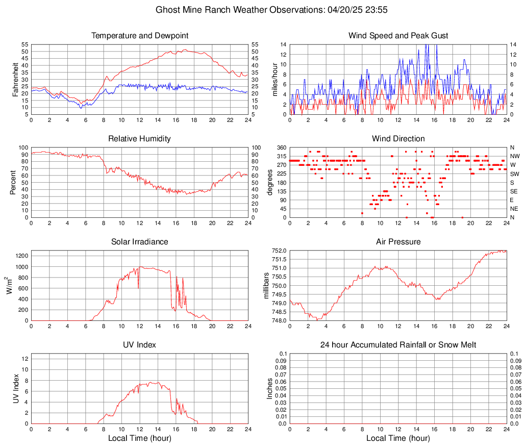 Temperature (F) 33.2 12.7 @ 05:30 51.4 @ 17:05 34.1