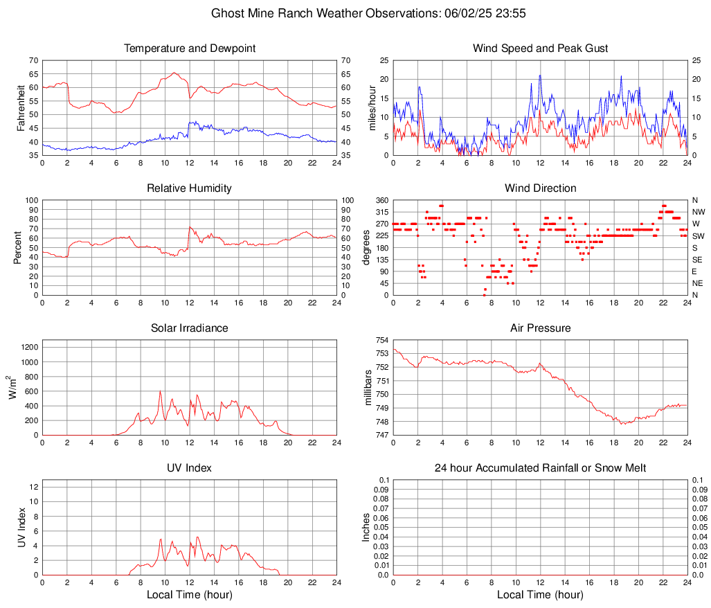 Temperature (F) 53.2 50.6 @ 05:50 65.5 @ 10:45 57.5