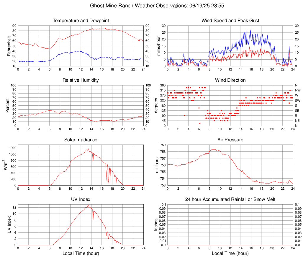 Temperature (F) 59.4 44.5 @ 05:40 84.5 @ 16:40 67.4