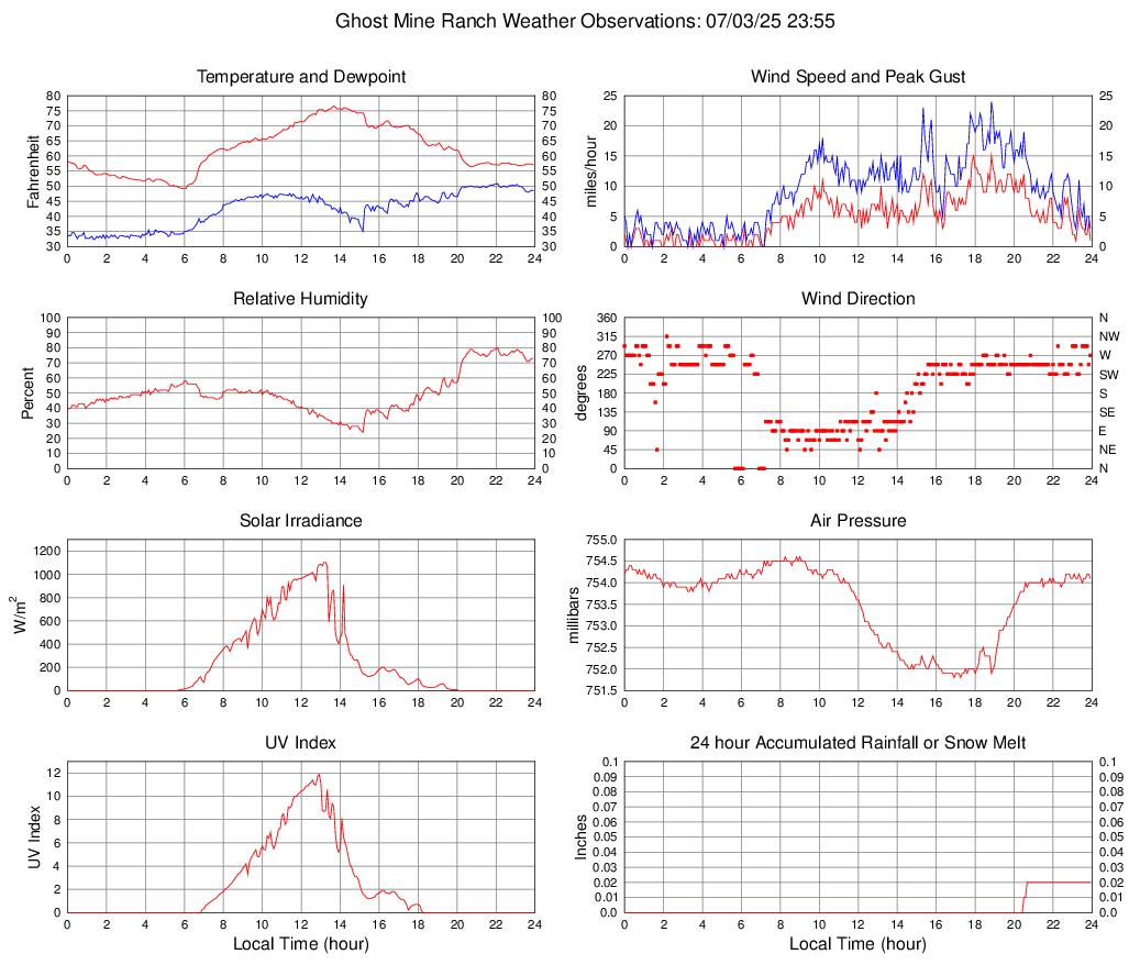 Temperature (F) 57.1 49.2 @ 05:55 76.6 @ 13:40 62.1