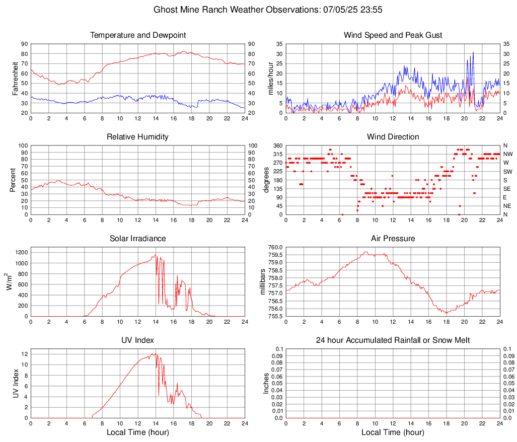 Temperature (F) 69.3 48.3 @ 03:10 82.5 @ 17:00 68.4