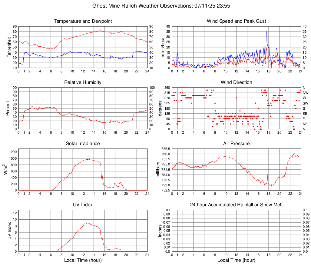 Temperature (F) 61.6 46.2 @ 06:30 81.9 @ 15:15 66.6