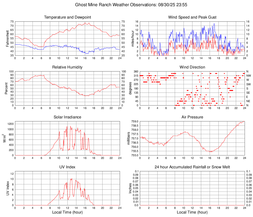 Temperature (F) 58.6 45.1 @ 05:45 73.4 @ 16:00 60.4