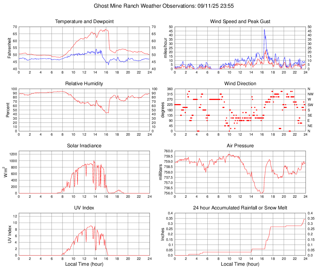 Dewpoint (F) 47.1 43.0 @ 16:25 54.2 @ 14:10 47.9