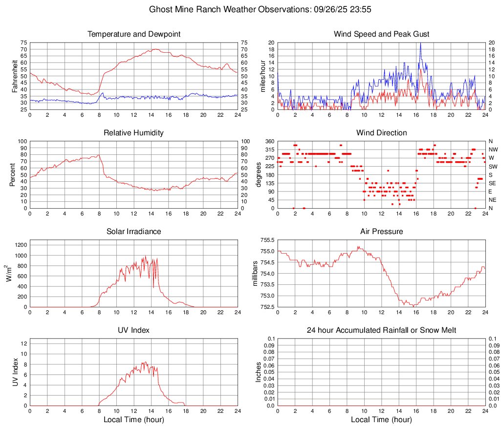 Temperature (F) 52.8 35.9 @ 07:05 70.1 @ 14:25 54.5