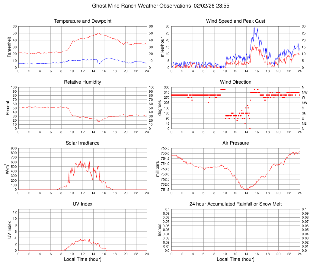 Temperature (F) 34.1 19.7 @ 01:55 50.2 @ 14:55 33.0