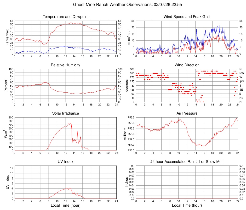 Temperature (F) 30.8 22.7 @ 06:50 52.4 @ 13:15 39.0