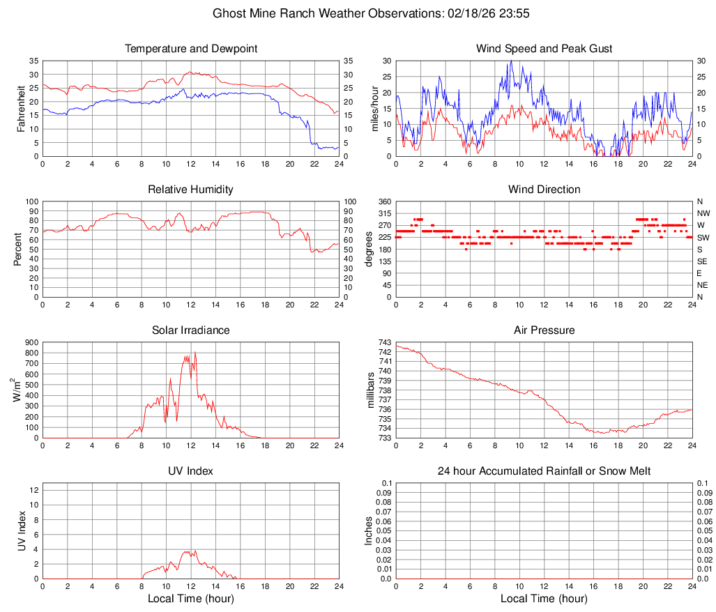 Temperature (F) 16.4 15.7 @ 23:35 30.9 @ 11:50 25.3
